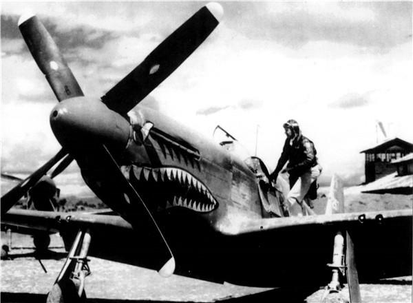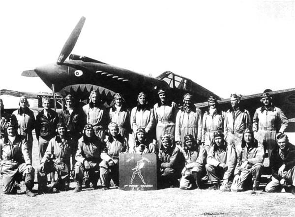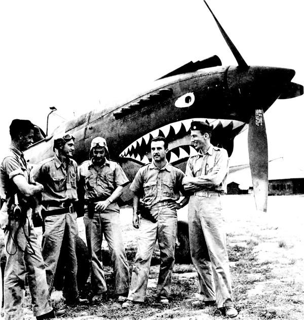 飞虎队第二中队飞行员在“战斧”战斗机前