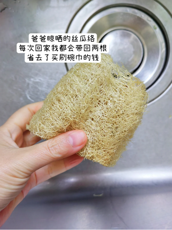 又比如刷锅的工具,年轻人买了这个用那个,但老一辈人往往习惯就地取材,自己仍旧有不少人坚持用丝瓜瓢刷锅刷碗。