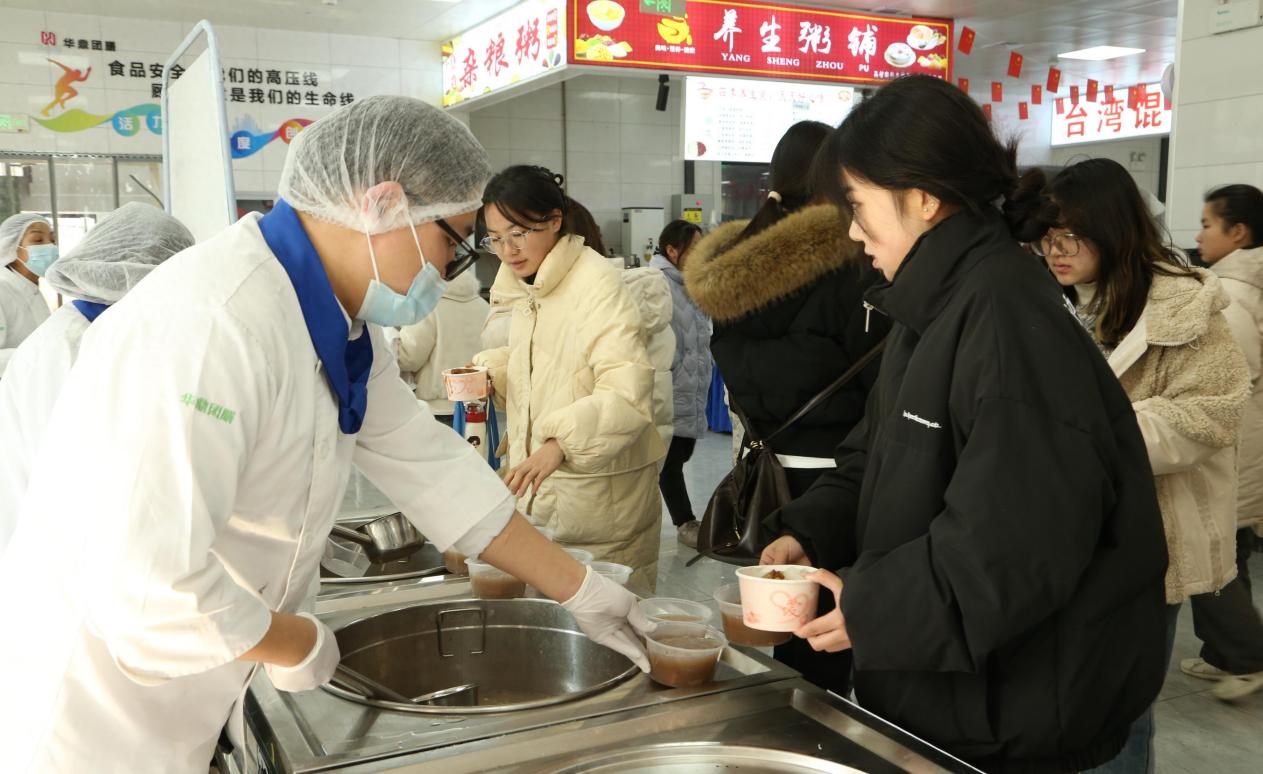 “热干面必须现煮现拌才够筋道,藕汤要小火煨才有滋味。”后厨的陈飞介绍着食物的制作过程,眼中闪烁着自豪的光芒。他们为这次活动准备了1000份热干面和藕汤,选用的是蔡甸的莲藕,正是上了春晚的哪吒同款。这样的用心让每一位学生都感受到学校的关怀,仿佛在告诉他们,学校一直在关注着他们的生活。