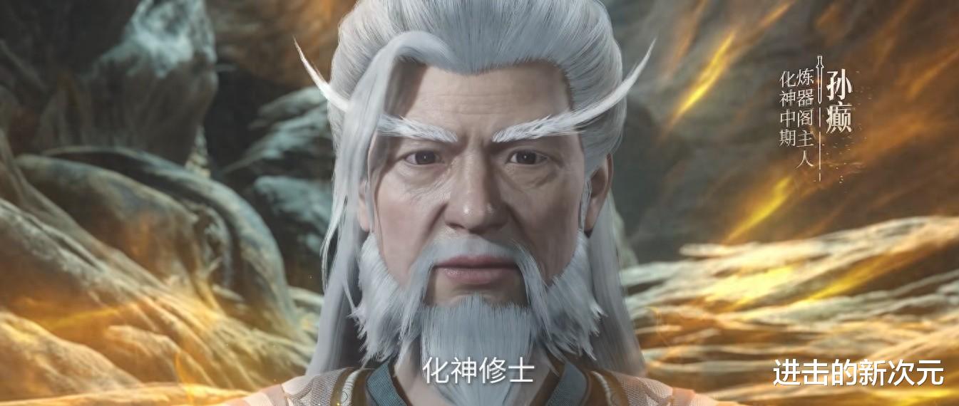 好在王林凭借极境秒杀数百结丹强者,又躲进了天逆珠,让那些元婴期找不着。值得一提的是,当时追杀王林的修魔海强者中,领头之人正是孙癫,只不过仅仅有一个镜头,便下线了。没想到如今,摇身一变,动画又让他变成了炼器阁主人孙癫。