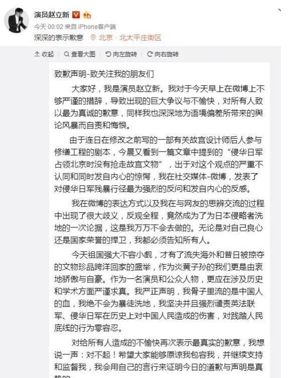 在巨大的舆论压力下,赵立新最终删除了那条侮辱女警的微博,并发表了一份道歉声明。但他的道歉被许多网友认为诚意不足,只是为了平息舆论。
