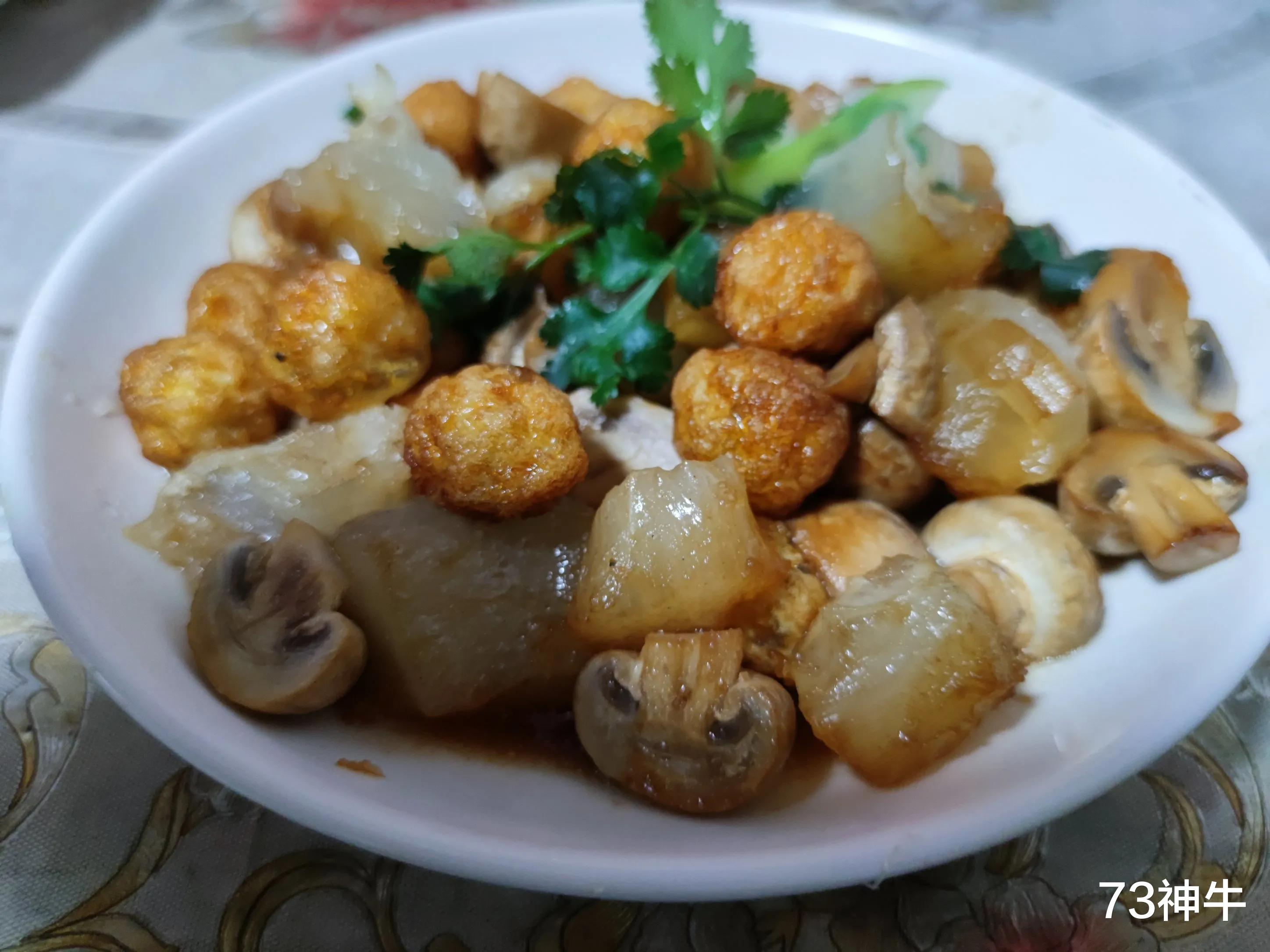 推荐菜谱:蹄筋口蘑烧鹌鹑蛋
