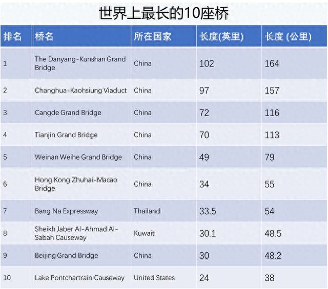 资料来源: The Longest Bridges In The World - WorldAtlas ; 12 Longest Bridges In The World | 2023 Edition - RankRed;