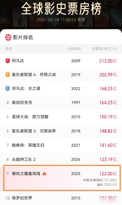 和张艺谋的《三体》相比,《哪吒2》就顺利多了,虽然早前的宣传不佳导致不少观众对《哪吒2》的期望值不高,但随着影片的上映,观众们的口碑逐渐升温,票房也水涨船高,最终取得了超122亿的票房佳绩,登顶全球影史第九名,这样的成绩,光线无疑是赚翻了。