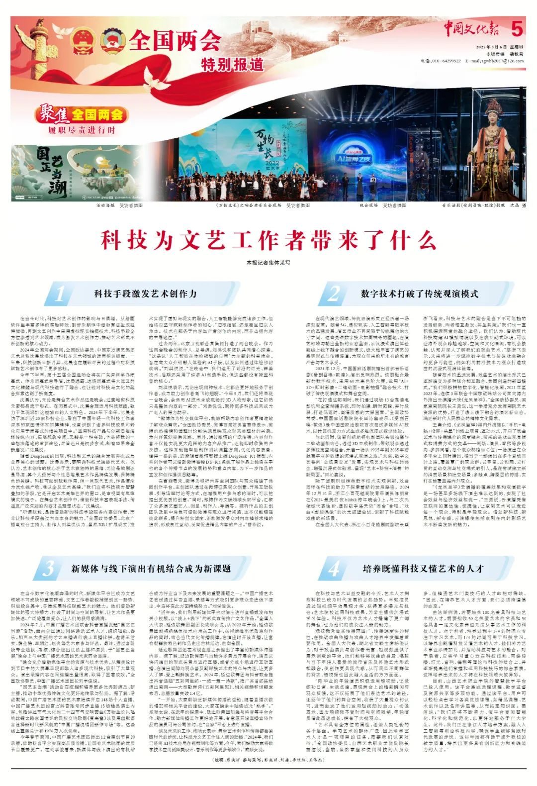 2024年全国两会期间,全国政协委员、中国东方演艺集团艺术总监沈晨就提出了科技在艺术领域的运用相关提案。一年来,科技创新日新月异,沈晨也在履职尽责的过程中对科技赋能艺术创作有了更多感触。