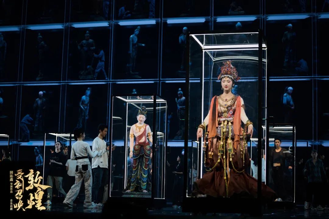 2024年12月,中国国家话剧院推出首部音乐话剧《受到召唤·敦煌》,演出反响热烈。该剧融合最新的数字技术,采用60米高色阶大屏,运用“AI+3D+即时影像+二维动画+电影拍摄”融合技术,打破了传统观演模式和舞台空间。
