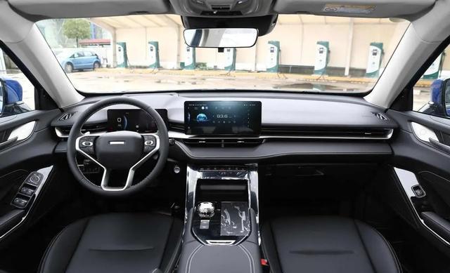 内饰以黑色为主,中控台环绕式设计,配12.3英寸超智联屏、10.25英寸数字仪表及HUD全彩抬头显,多屏联动,软材包裹与缝线工艺提升舒适与科技感,超越同级。