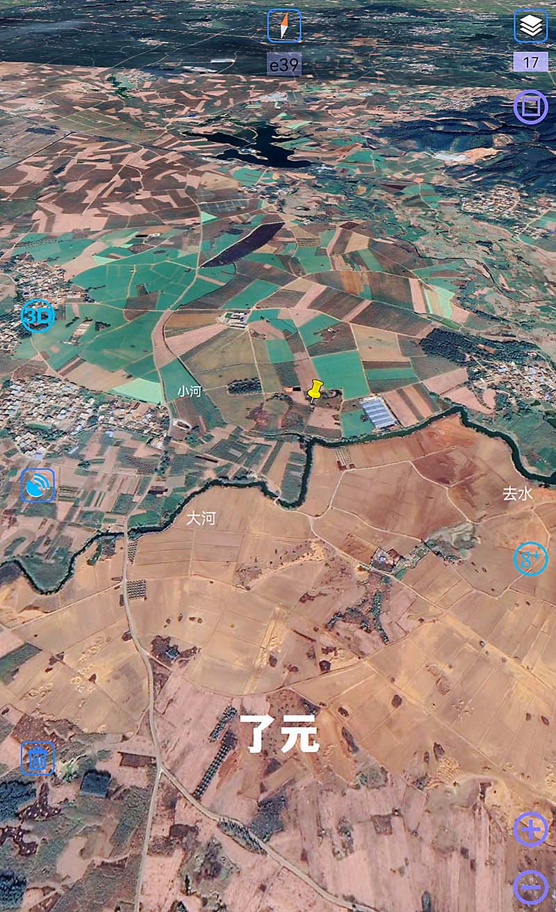 02.卫星图看龙局大形势,黄标处即是穴场。