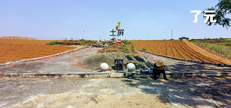 05.于拜台正看穴场,黎祖背靠土屏,中间微垂乳,坟做于乳脉之中,后面还有很多坟,但黎祖是为土坡大窝之正心位置。
