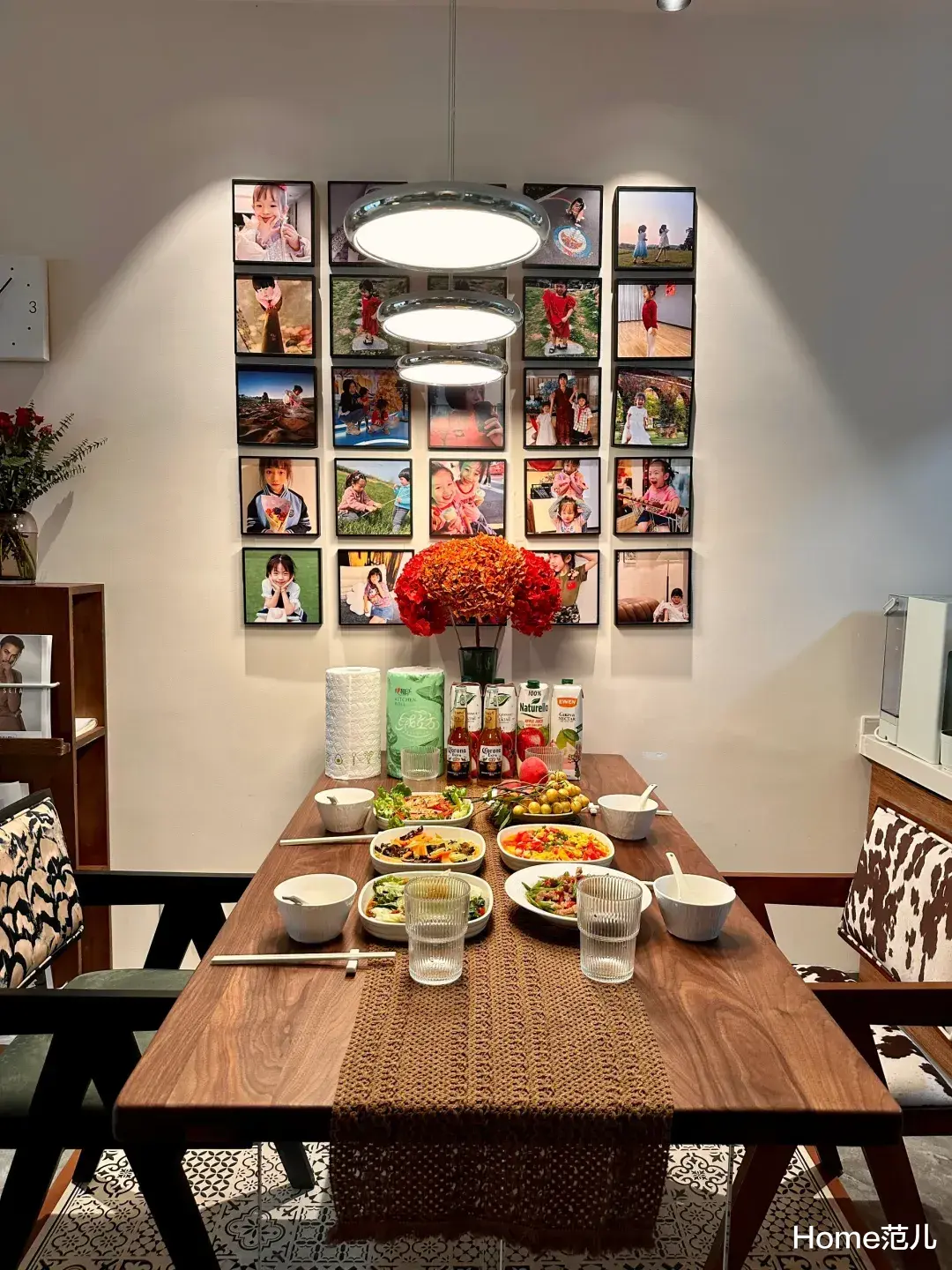 灯具的简约现代风格与餐桌的木质自然风情形成了完美的呼应与对比,时尚感与温馨氛围并存。