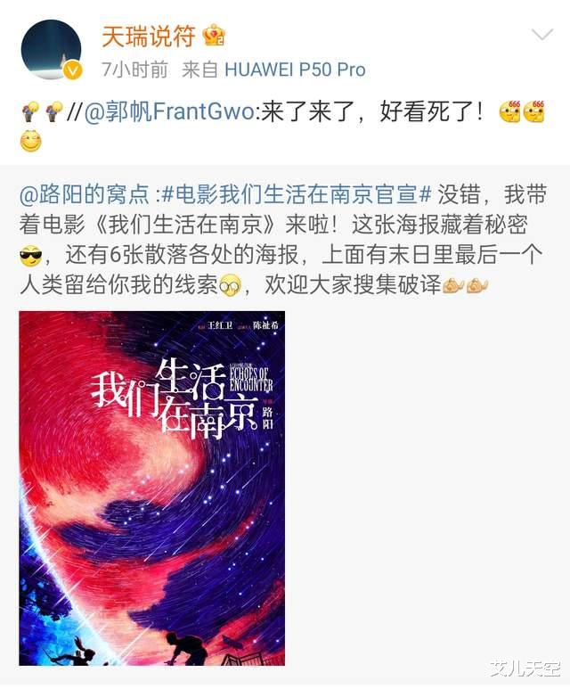 天瑞说符的《我们生活在南京》已经确定要出电影了,目前电影已经官宣。