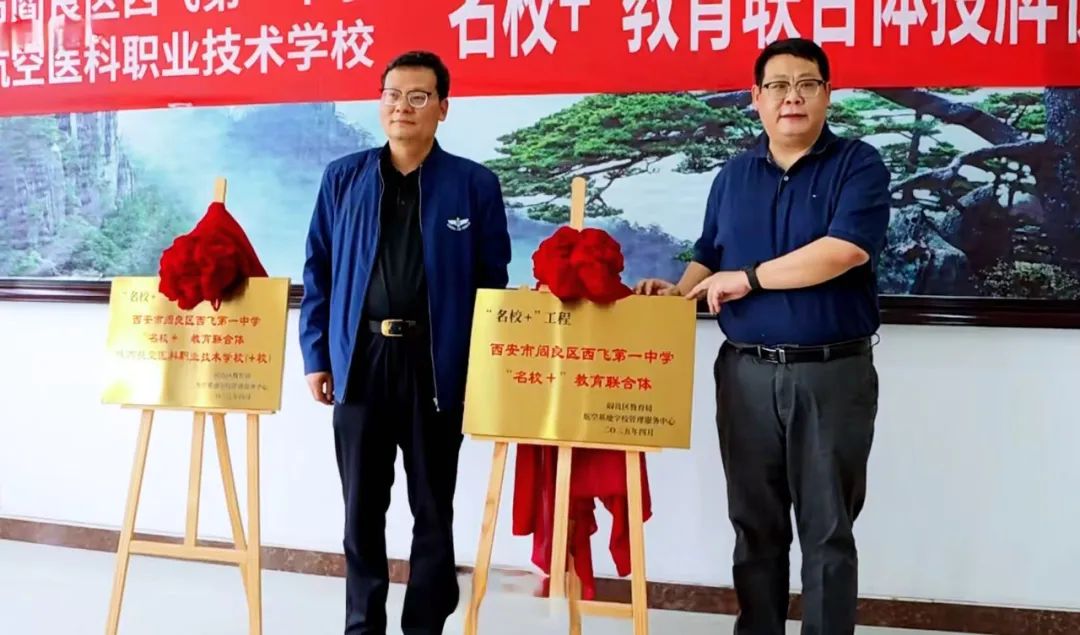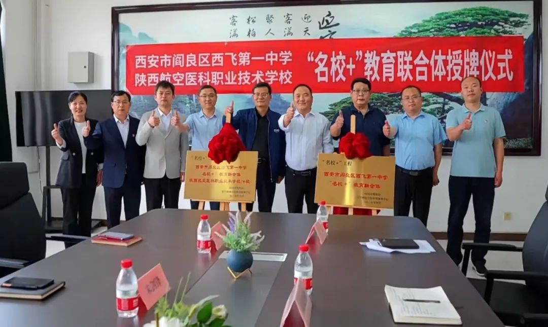 为贯彻落实国家《职业教育提质培优行动计划》的重要举措,更是推动职普教育资源共享、优势互补的创新实践,4月18日下午,西安市阎良区西飞第一中学与陕西航空医科职业技术学校举行名校+教育共同体授牌仪式,教育主管部门代表,两校领导暨教师代表齐聚一堂。