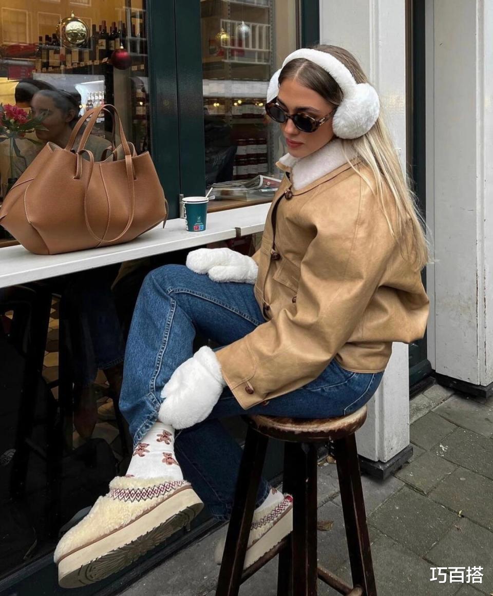 选择博主脚上这类摇粒绒一体式的雪地靴也是OK的,在女人味和氛围感展示上,既不挑人也不影响观感,可爱减龄又清新特别,对穿衣追求个性的姐妹来说非常友好。