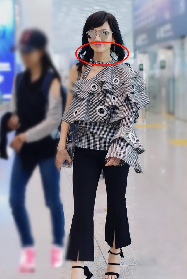 尤其是她的颈部,皱纹如同被岁月刻下的一道道痕迹,即便精心的妆容也难以完全掩盖。