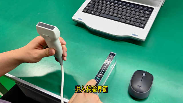 ·在探头上均匀涂抹偶合剂,将校验模块透明面水平放置于探头表面之上,使探头与模块间的接触面没有气泡残留。如有气泡,可通过简单按压或小范围移动将气泡挤出。