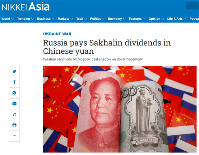 于是,双方就这么争执不下,最终达成了一项协议:俄罗斯使用人民币向“萨哈林1号”和“萨哈林2号”油气开发项目的持股日企支付股息分红。