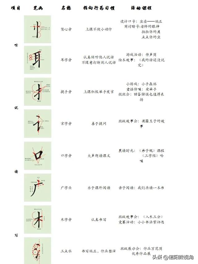 起笔,为书法作品订好了位置。立德,为人生定好了基调。低年级高老师借助“起笔”特点,培养学生的行为习惯。