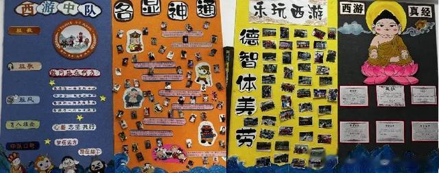 低年级阶段,李老师以为"西游"为蓝本,精心布置班级环创,让学生们仿佛置身于神奇的西游世界。