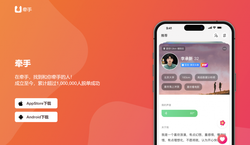 在众多线上交友平台中,牵手App拥有大规模的90后、00后用户。这一群体,作为数字时代的原住民,他们对于交友有着更为个性化和多样化的需求。他们渴望找到与自己观念契合、爱好相似的另一半,寻找共鸣与理解。对此,牵手App从兴趣标签入手,深度挖掘用户兴趣、爱好等个人特征,促进深度交流。