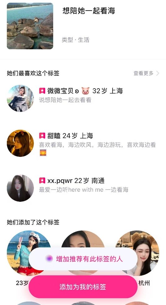 牵手App创新性地推出了多元化的兴趣标签系统,将用户根据兴趣爱好、生活方式、职业背景等多个维度进行细分。从基础的爱好、文艺、运动、时尚,到更为细致的生活、宠物、工作、车、酒等领域,都进行了详尽的划分。每个大类下,又细分出数十个乃至上百个不同的具体标签,如“喜欢落日”、“想跟你一起逛街”、“想陪她一起看海”等,跟随这些极具生活氛围的标签寻找另一半,成功率也会更高。