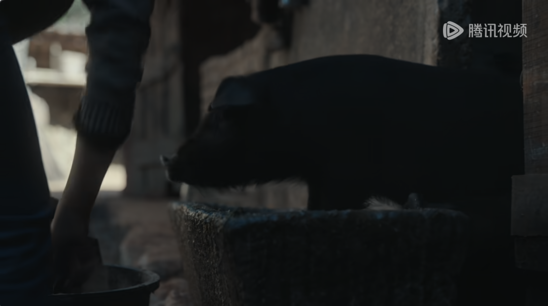 这扇门,是男权环境对张桂梅的阻碍,其高耸无比,似乎不可战胜。谷雨父亲堂而皇之的拿走了张桂梅留给谷雨的钱。父权与男权,在物质资源分配中的绝对优势得到了表现。而谷雨则与猪处在了同一画面中,正是她在这个环境中的现有地位,也是张桂梅口中“你卖3万你是猪吗?”这句台词在画面中的延续。
