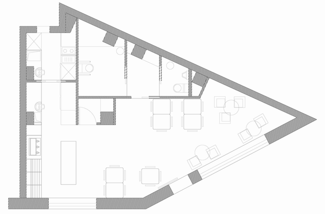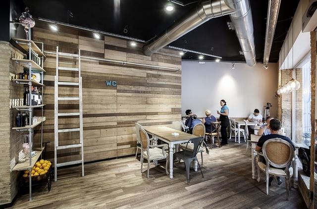为了保持建筑的原汁原味,设计中保留了许多建筑原有的砖墙,配合一些拼接木板的应用,整个风格看上去协调统一,质感十足。