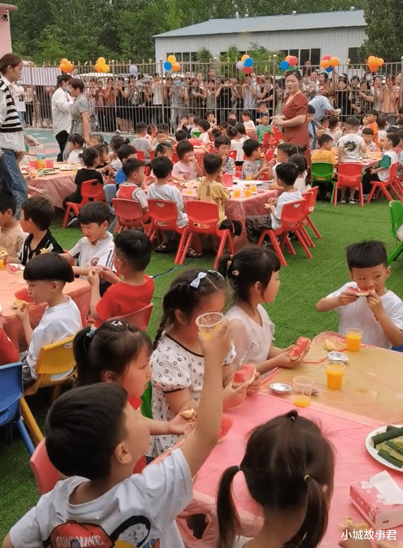 虽然天气很热,但小朋友们看到那么丰盛的美食都很开心,大家一起围席而坐,边吃东西边跟身边的小朋友聊天,加深了孩子们之间的感情。家长们也很欣慰,不用表演节目,解放了孩子,也解放了家长。网友们对此也纷纷点赞:这样多好,吃吃喝喝开开心心才是真正的儿童节。孩子不用排练,老师和父母都更轻松。