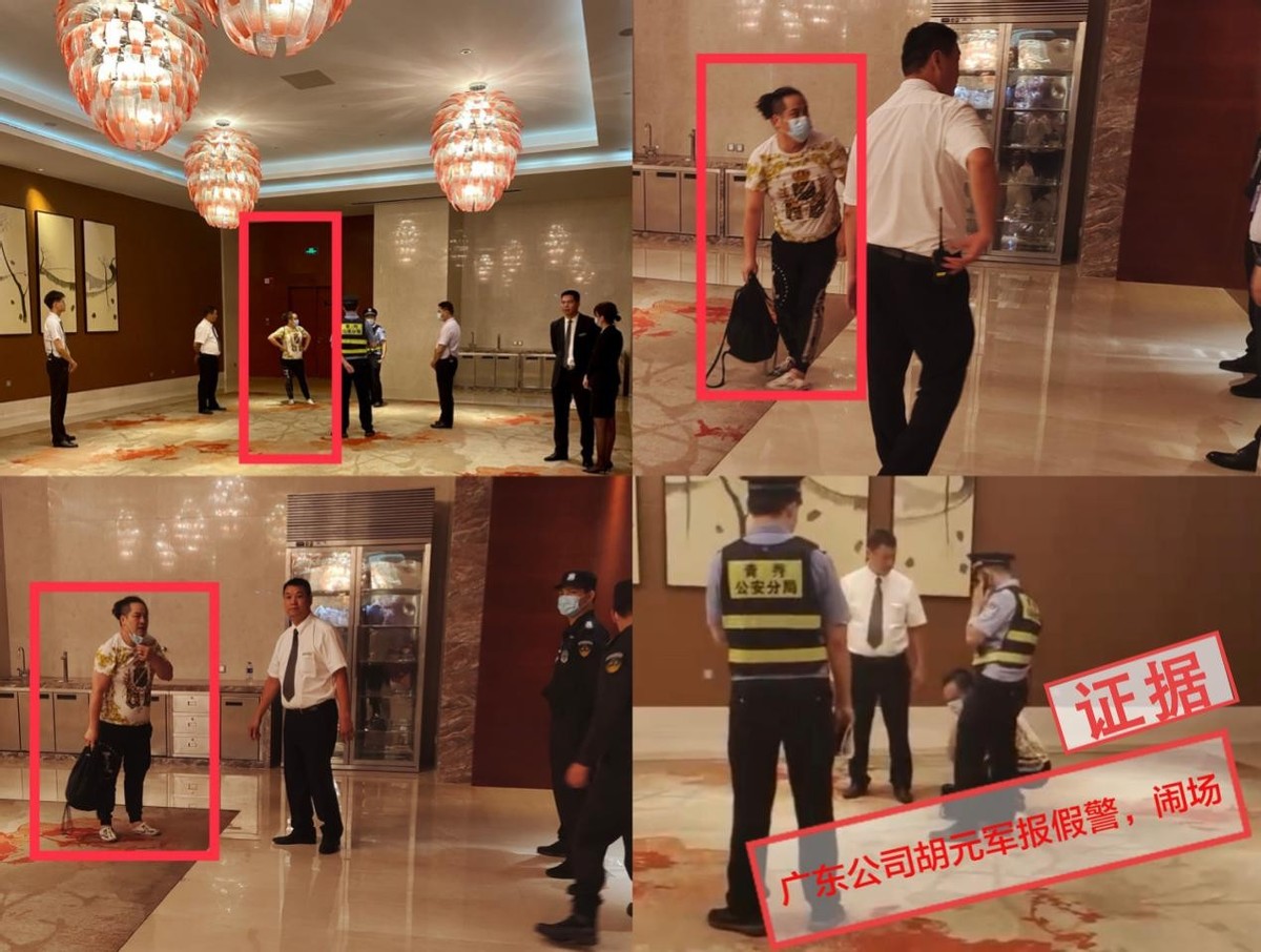 1、对方断章取义误导民众认知。真相是在黄安妮等授权的广西活动上,是冯跃振等人不但报假警,还与股东胡元军等人到场恶意滋事;嘉兴同样也是恶意举报,事实是,不论是庞宁芳还是黄安妮合作单位在被冯跃振恶意举报后, 经当地派出所认真调查事实与过程后,仅对当事人进行友好引导与提醒并结案。真相是 2021 年我方广西总决赛现场,广东公司股东胡元军自称全球秘书长再次报假警,并在现场大喊大叫再次滋事,被公安当场抓获与制止。