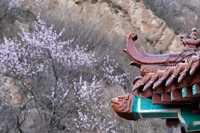 古建筑屋檐下,桃花盛开,远处的山脉若隐若现。这样的画面,让人不禁想起“人面桃花相映红”的诗句。春天的气息扑面而来,令人心旷神怡。
