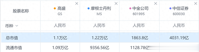 高盛在美国的角色类似于我国的中金公司(CICC, China International Capital Corporation)或中信证券(CITIC Securities)。中金公司和中信证券在中国市场的地位、业务范围以及影响力与高盛在美国和国际市场中的角色较为相似,都是国家金融市场的核心参与者。高盛的总市值是1.1万亿人民币,中金公司1863亿,中信证券4031亿。