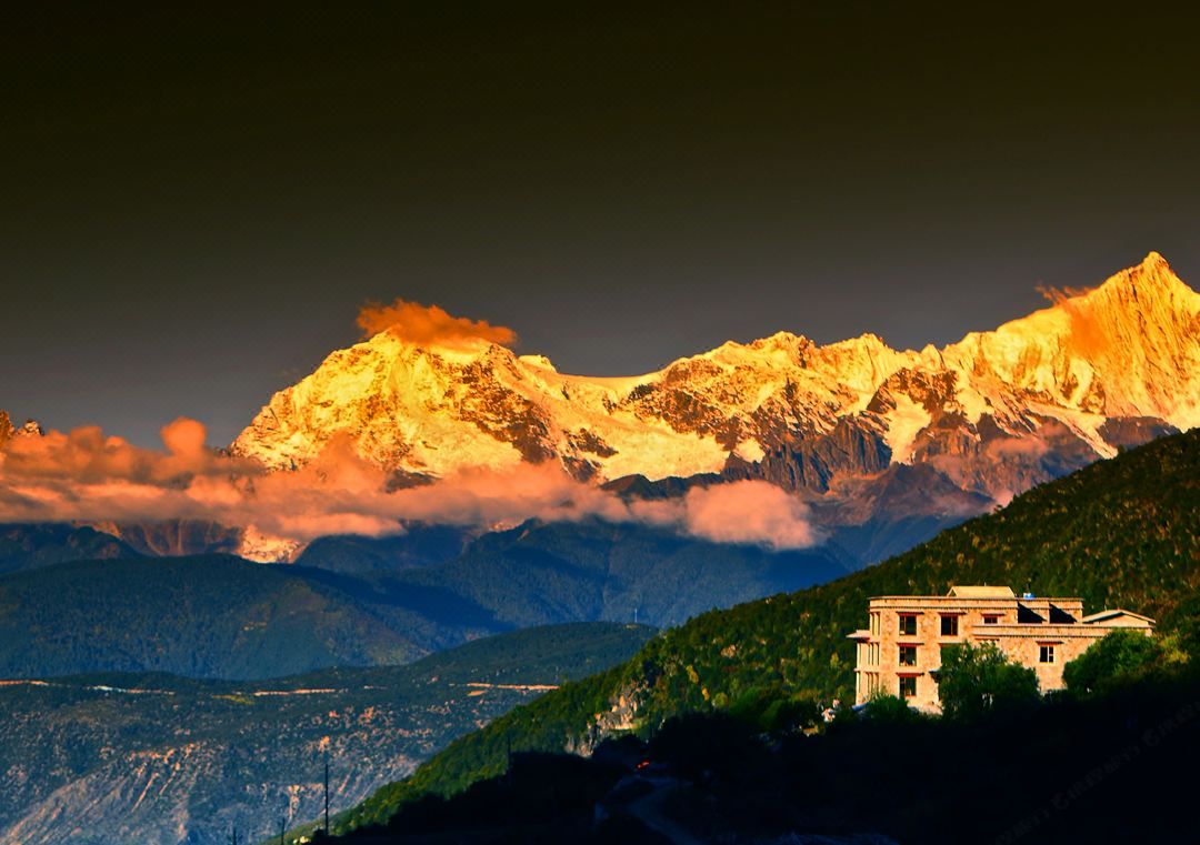 在丽江古城宿眠,看墨蓝月夜下,神山静穆守护着净土,仰观宇宙之大,感受磅礴孤寂美;早起幸运的话还可以看到日照金山,连绵起伏的雪山好像被涂上了一层金箔,金光熠熠,一睹壮美风光