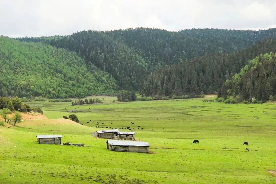 香格里拉达拉牧场,夏天水草丰茂,野花盛开,牛羊成群吃草,像是洒落在草原上的珍珠