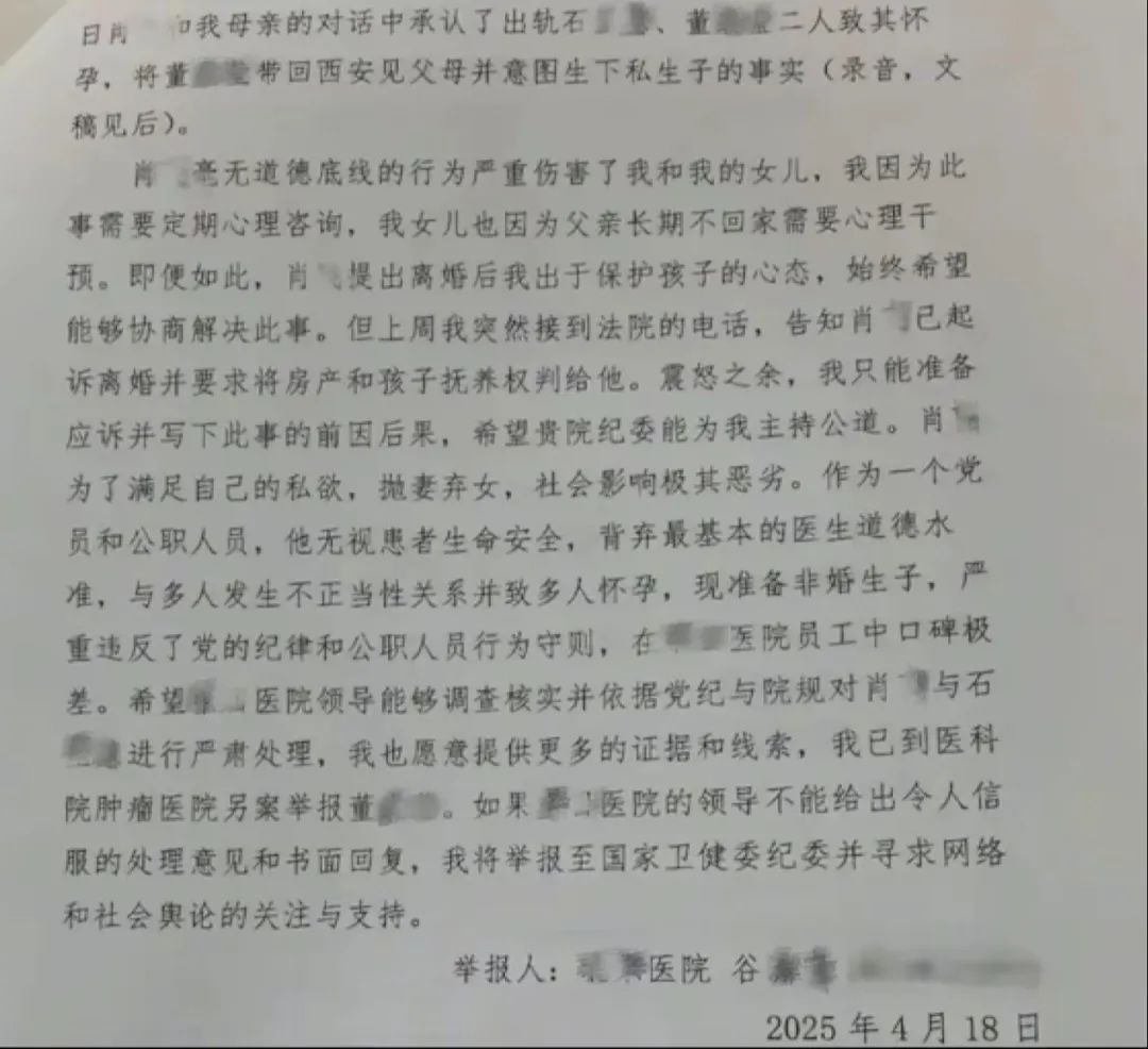 “高知女性发起狠来,谁都拦不住。”这句话用来形容北京某三甲医院胸外科副主任医师肖某的原配妻子谷医生,再贴切不过。谁能想到,一个看似体面的医学精英家庭背后——丈夫婚内出轨多人,情人怀孕逼宫,原配忍无可忍甩出40页“核弹级”举报信,最终让这位“海王”医生身败名裂。