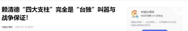 2、中国台湾网:《赖清德“四大支柱”完全是“台独”叫嚣与战争保证!》
