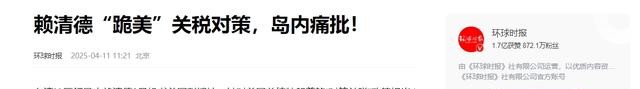 1、环球时报:《赖清德“跪美”关税政策,岛内痛批!》