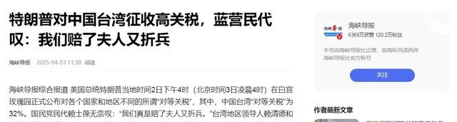 3、海峡导报 《特朗普对中国台湾征收高关税,蓝营民代叹:我们赔了夫人又折兵》
