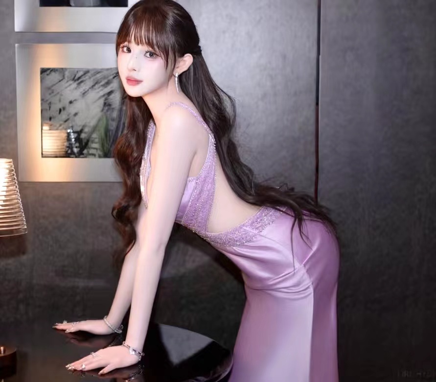 白甜有一件吊带裙,露着后背,她身材很好,浑身雪白。