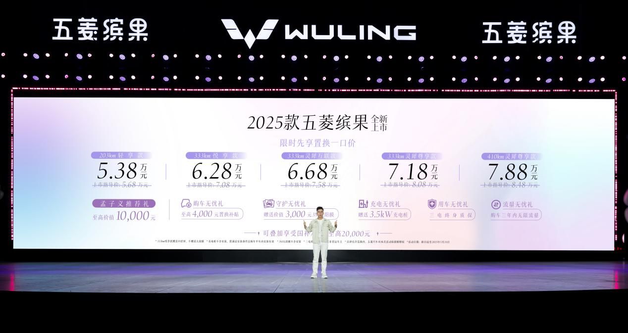 【2025年4月19日】4月19日,“缤纷多彩,果然不同”2025款五菱缤果上市音乐派对在郑州如意湖文化广场盛大启幕!现场,五菱汽车官宣2025款五菱缤果正式上市,共推出五个配置,上市当日至5月31日,购车限时先享置换一口价5.38万-7.88万元,携手五菱缤果代言人孟子义,为用户开启缤纷新旅程!