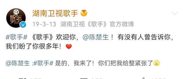《歌手》2019陈楚生紧急踢馆 在线歌手统一防线. 中国网娱乐. 2019-03-22[2022-12-21].
