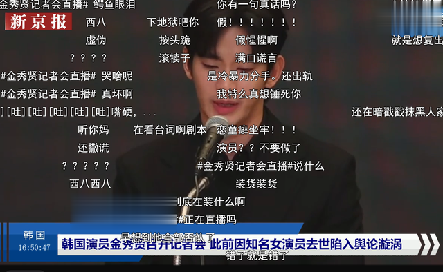金秀贤还在直播上表示,网上曝光的他与金赛纶在2018年的聊天记录是假的,那个与金赛纶聊天的人不是金秀贤。