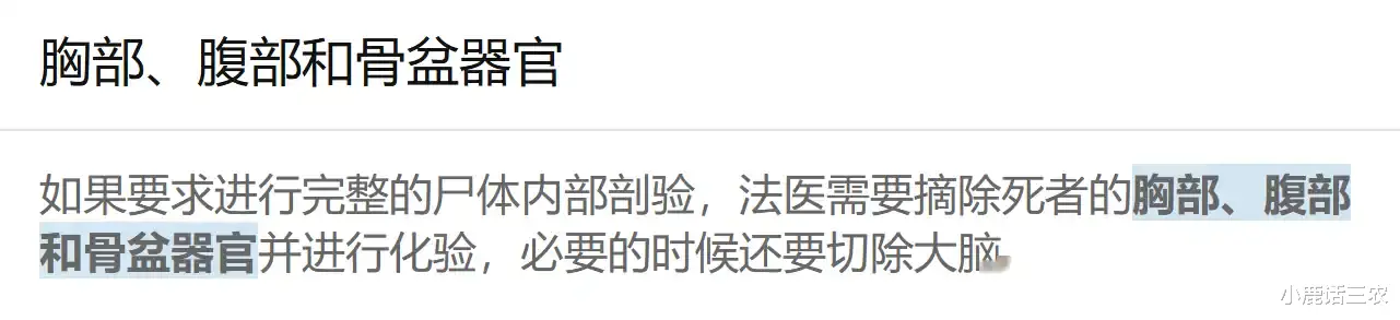偏离主题了,如果是尸检,摘内脏是正常的,如果是,没尸检前摘内脏,是不正常的,需要调查。时间点顺序要说明白