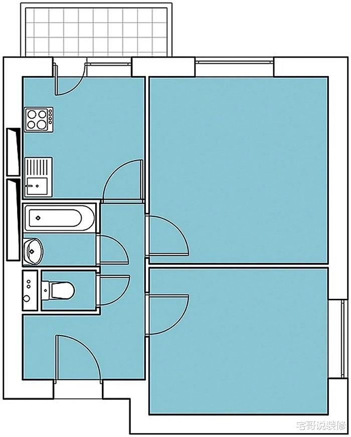 我们先来看看原始结构图,原始户型包含一个小的玄关、一个两分离的卫生间、两个独立的房间、一个封闭的厨房和一个生活阳台,基于业主的需求,设计师首先对空间结构进行了重新布局。