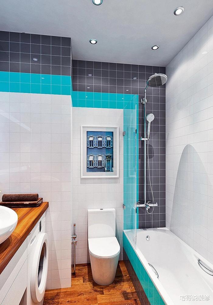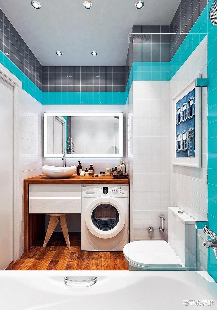 卫生间合二为一,重新调整布局,让卫生间里能够放得下洗衣机;
