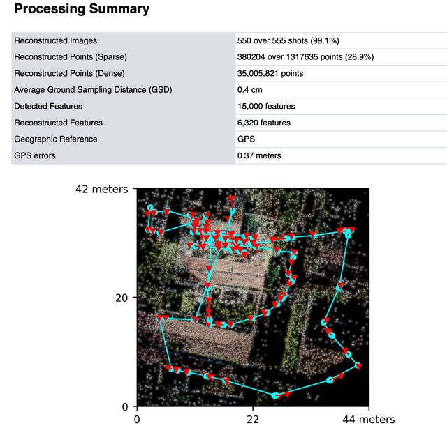 从这里可以看出,这里的图片的重构率是99.1%, 地面采样距离(GSD)为0.4, 这个结果还是可以接受的。