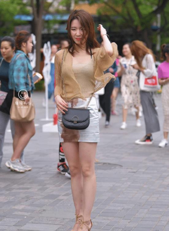 街拍:小姐姐穿泼了咖啡的裙子出街,有迷之自信!