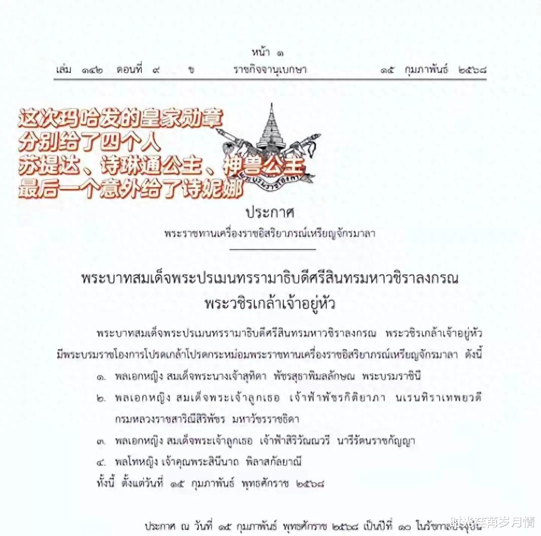 2月15日,一则王室公告惹人注意,泰国王室后宫女眷共四人获得“查克拉玛拉勋章皇家勋章”!