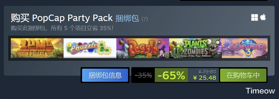 这个不是3A,但绝对经典,里面包含祖玛、植物大战僵尸原版,现在只要25块钱,赶紧补个票吧!