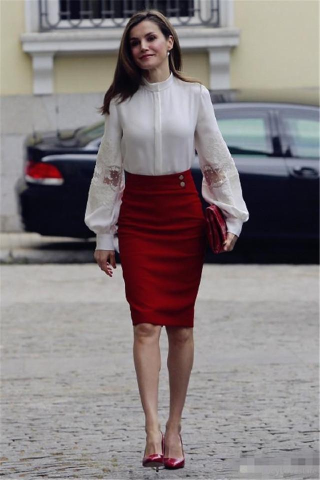 红色的包臀半身裙穿上身,让西班牙王后的颜色型身材立马展现出来,腰细腿长,而且身材凹凸有致,即便是一件白色衬衫也能穿出性感迷人的味道。
