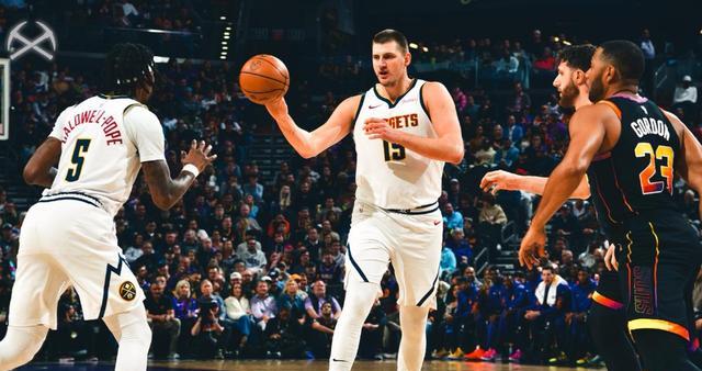 约基奇,小波特,雷吉杰克逊,波普和霍勒迪,太阳这边派出的是,杜兰特,戈登,阿伦,努尔基奇和迪奥普。首节比赛开始,约基奇跳球获胜,掘金队率先拿到球权,霍勒迪弧顶三分开火一击命中,打进本场比赛首个进球,努尔基奇篮下接球上篮也为太阳队开张,霍勒迪突破抛投继续得手,杜兰特45度角三分发炮一箭穿心,约老师内线高举高打同样也有,杜兰特长两分直接出手稳稳命中。第一节比赛前半段,两队比分还非常胶着,双方都保持着超高进攻效率,波普后仰干拔跳投两分落袋,小波特空位三分球出手一箭穿心,约基篮下抛投正入网心。