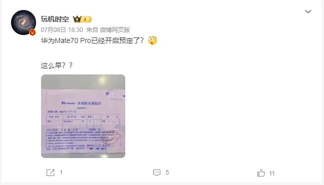 其实早在之前,就有博主爆料,表示一些线下门店已经开始接受华为Mate70系列预定,并且还晒出了一样疑似华为Mate70 Pro的押金单。